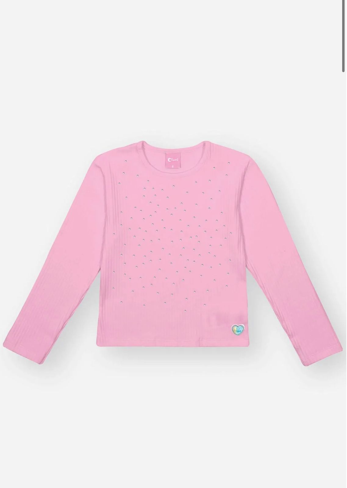 Surpreenda sua pequena com uma peça cheia de charme e personalidade! Esta blusa infantil feminina, confeccionada em canelado glow de toque macio e textura levemente brilhante, combina conforto e modernidade para criar looks incríveis. O modelo conta com decote redondo clássico, mangas compridas para dias mais fresquinhos e um detalhe encantador de aplicação de strass na parte frontal, que adiciona um toque de sofisticação e brilho discreto.
